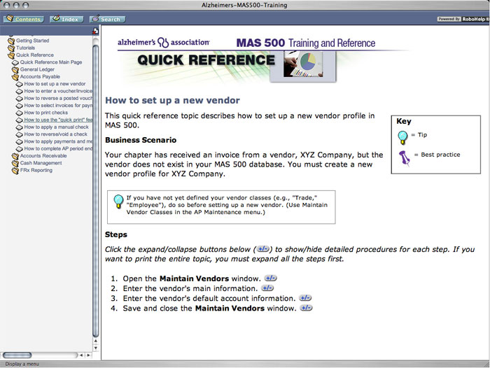 Project: Web-based training and reference guide for financial accounting software, including software simulation