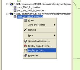 Because the data is in longitude/latitude only, I must convert it to x,y format using the “Display XY Data” function.