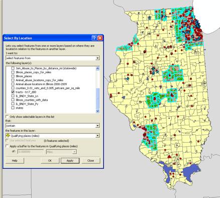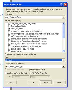To give myself some flexibility when I later apply my preferences, I select only those tracts that contain my qualifying places and export a layer based on the selection.