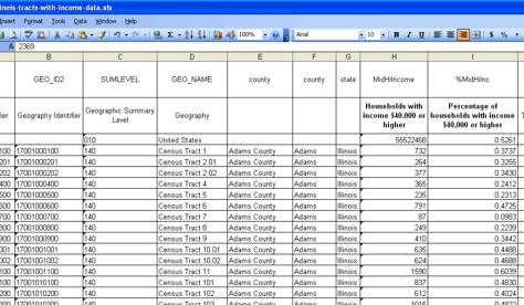Since the tracts attribute table doesn’t include income, I have to obtain income data from the U.S. Census for all Illinois tracts.