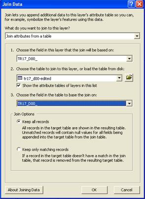 First, I import the modified shape file table into my map file then join it to the original shape file table: